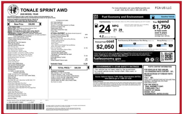 2026 Alfa Romeo Tonale SPRINT AWD